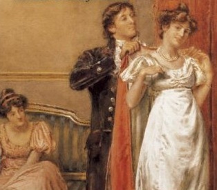 There’s a kerfuffle going on in the next room? Is he fighting for my honor? I’m straining to see without looking obviously interested. Good thing I have this fan to hide behind. Huh, the shouts are getting louder. What seemed like a duel is turning into a riot, and here come the screaming idiot girls into this room. And there’s Miss Bingley, and oh, look, she fainted on the best positioned settee. Surprise surprise.